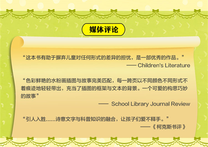 林珮思,美国华裔童书作家,画家。作品《月夜仙踪》曾获美国纽伯瑞奖,《玲与婷:不太一样》获得盖索奖。绘本《难看的蔬菜》以其儿时的经历为创作灵感。另有,《我们的食物》、《我们的季节》均受好评。目前住在美国马萨诸塞州。