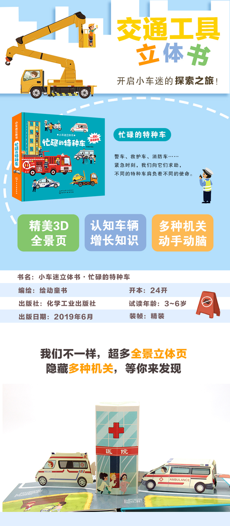 《超好玩的车辆立体书》是一套介绍现代车辆的趣味图书,围绕4个不同的主题,归纳收录了所有相关车辆,再配上轻松浅显的说明,能够让孩子对车辆体系有更系统和直观的了解。而且包含色彩鲜明的立体全景页、翻翻页和各种拉拽小机关等趣味互动暖心设计,可以促进小朋友的手脑协调能力,让阅读过程变得生动有趣。《快乐的旅行》是以旅行为主题,生动展现了旅途中会出现的各种车辆如房车、游轮、火车等等,让孩子们进一步熟悉平时旅行中接触到的车辆,能真实感受到旅行中的快乐和知识。