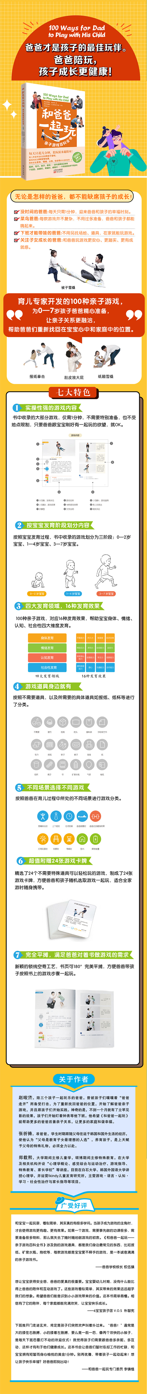 都说好妈妈胜过好老师,但育儿专家开发的100种亲子游戏,我爸爸就是孩子最好的玩具。为0—7岁孩子爸爸精心准备,提高爸爸的游戏力;帮助宝宝身体、情绪、认知、社会性四大维度发育!