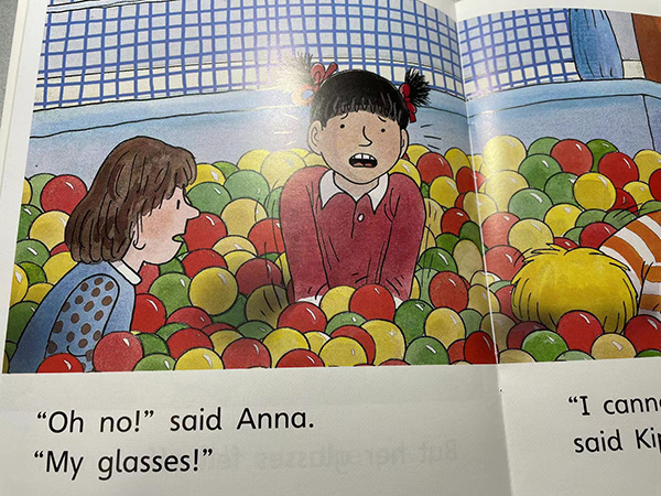 Kipper和Anna一起在海洋球池里面玩耍,安娜地眼镜丢了,怎么办呢?