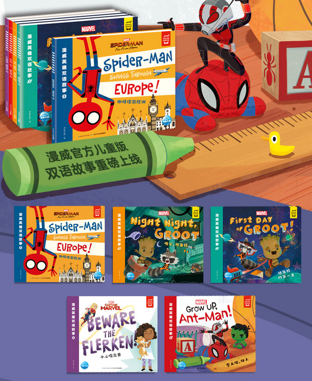《漫威英雄双语故事2》是由漫威官方授权,中英双语精心编排的图画故事书。钢铁侠、美国队长、浩克、索尔等众多漫威英雄人物越来越受到小朋友的喜爱,他们的故事影响了千千万万的小朋友。以漫威英雄为主角的双语故事书对于孩子来说,具有一种特殊的魔力,可以让英语学习变得更轻松更有趣!本书讲述格鲁特与火箭浣熊共同努力拯救银河系的故事。清新可爱的画风,简单有趣的英文故事,再加上生动活泼的中文译文,让孩子在阅读喜爱的英雄故事的同时,提高英语水平。