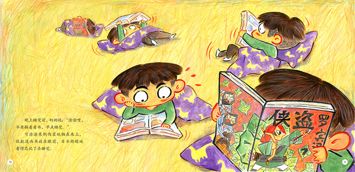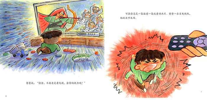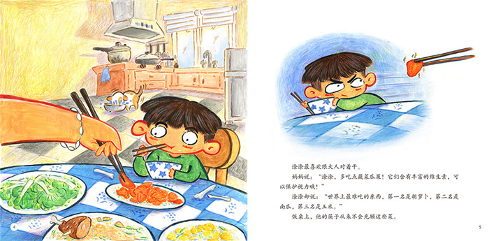 妈妈让涂涂多吃蔬菜瓜果,可以保护视力,涂涂却嫌胡萝卜、南瓜、玉米难吃;爸爸让涂涂少看一会儿电视,涂涂却一集接一集地看动画片;爷爷让涂涂别总玩iPad,多出去运动运动,涂涂却抱着IPAD不撒手;晚上睡觉前奶奶让涂涂不要躺着看书,涂涂却东倒西歪地躺在床上,就把漫画书放在眼前……果然,没过多久,涂涂就看不清黑板上老师画的小兔子了,就连梦里的妈妈也变得模模糊糊的了……