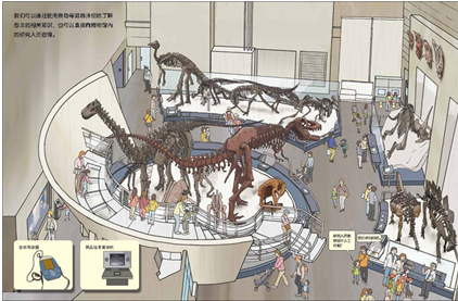 今天,爸爸带我一起去参观博物馆。我看到博物馆里展示各种各样的化石、标本。听了工作人员的介绍,我知道了恐龙化石从发掘到制成展品的过程,博物馆的工作人员是如何工作的,大型展品是如何展示的,以及模拟展览室等。