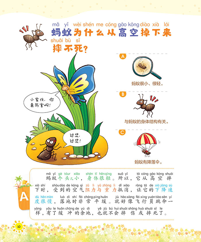 这套书通过大数据分析遴选了365个孩子们最感兴趣的高频问题,以幽默风趣的漫画形式为孩子们作了详尽的解答,内容囊括了动物、植物、地球、天气的秘密、生活中的科学常识、人体小知识等主题。书中每个“为什么”都配有幽默漫画,并为孩子提供三个选项,充分拓展孩子的思维能力,然后再用通俗生动的语言,深入浅出地予以巧妙回答,将抽象、深奥的科学知识形象而浅近地表达出来,使抽象的知识变得生动有趣,易于理解,让孩子们在轻松愉悦的氛围中阅读,培养他们的观察力、想象力、创造力和学习能力,增长他们的见识