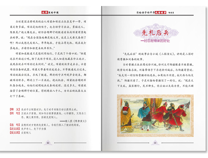 成语是汉语中的璀璨明珠,以其精练、形象,极富表现力的特点,和有着历史文化、民族文化的丰厚积淀成为了中华民族语言的瑰宝。本书将那些最常用、最脍炙人口的成语以讲故事的形式呈现出来,使青少年在了解历史、增长见识、提高学养等诸多方面受益匪浅,全书配有精美插图,对文中生僻字注音,并注明了成语的出处,是青少年成长的必备读物。智慧篇的成语故事引人思考,让读者能加深对成语的理解。