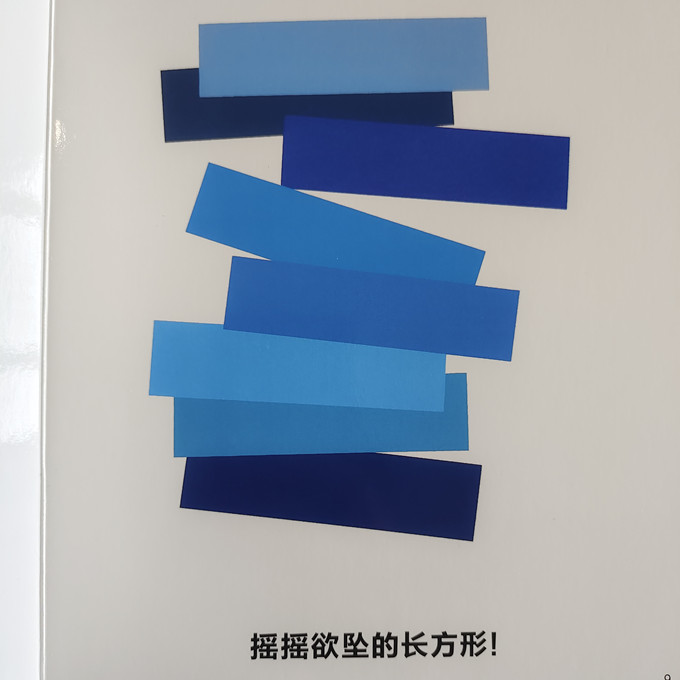 本书极具创意的首次将艺术启蒙和概念认知完美结合在一起,时尚独特而又充满新意。书中精心挑选了《向正方形致敬》系列的一些作品,以及艾尔伯斯的著作《色彩互动学》中的一些作品,来帮助孩子更好的理解形状的魅力,以及色彩的变化。这本书简单来看待的话是一本幼儿形状认知书,再深入一点,可以思考探寻画作中的色彩互动奥秘,将其看作现代艺术启蒙书。让孩子从小接触到现代艺术,激发他们的想象力。