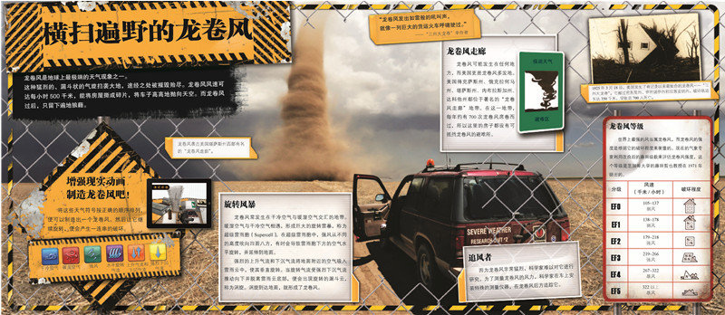 本书介绍了地球上常见的自然灾难:地震、海啸、龙卷风、火山等十种自然灾难现象。你想体验一下身处龙卷风或是地震中是什么样的感受吗,担心不安全吗?完全没有必要,有了AR技术,本书让你切身体会到沙尘暴、海啸、地震、龙卷风等极端的自然状况,满足你对它们的好奇心。