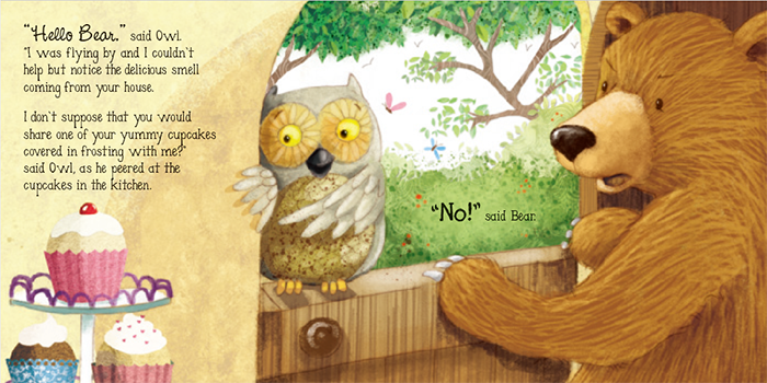 大熊烤了香香的饼干,让人垂涎欲滴 小伙伴们纷纷来敲门了 可是大熊拒绝了大家的分享请求 这一切都被小熊看在眼里 它会怎么做呢? Share them with his friends! 宝宝会从这个故事里理解,其实对于分享这件事情,回答yes往往比回答no有更多的收获 简单的故事,讲述与人分享的心情 精美的绘本里蕴含无尽的乐趣和哲理