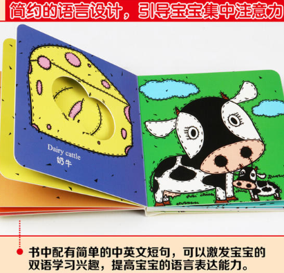 书中配有简单的中英文短句,可以激发宝宝的阅读兴趣,提高宝宝语言表达能力