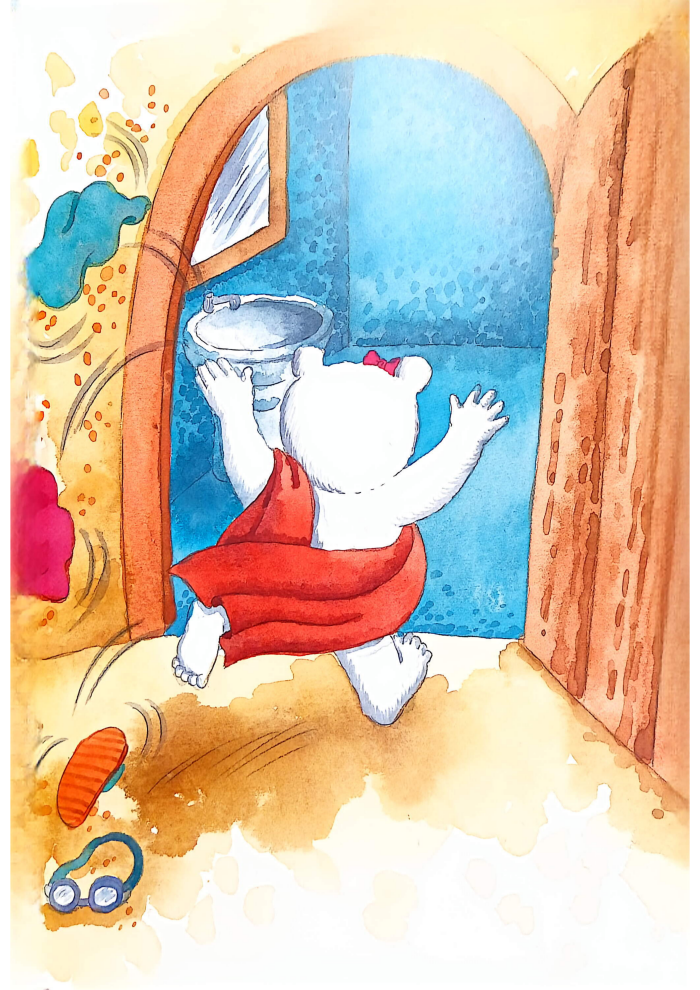 米拉在浴室玩耍时,发现了地面湿滑、电器靠近水源等安全隐患,学会了浴室安全规则,避免意外发生。