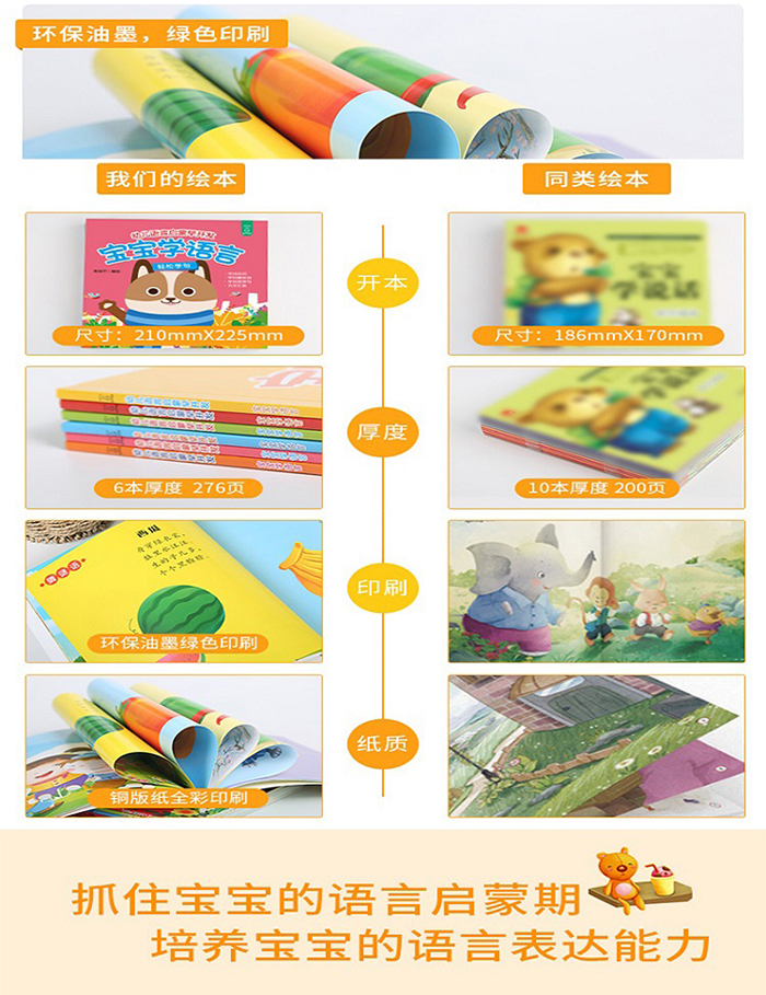 2.通过书中图文并茂的引导孩子学说话,让孩子逐渐愿意表达自己。