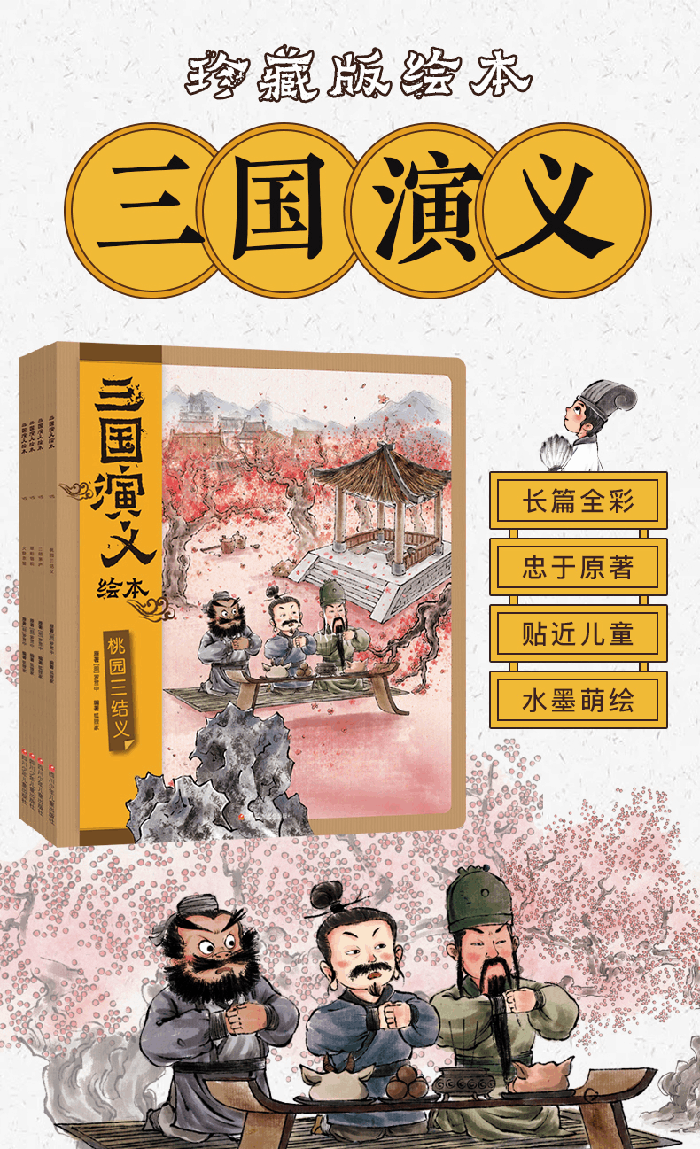 《三国演义》以描写战争为主,反映了魏、蜀、吴三个政治集团之间的政治和军事斗争,大致分为黄巾之乱、董卓之乱、群雄逐鹿、三国鼎立、三国归晋五大部分。在广阔的背景下,上演了一幕幕波澜起伏、气势磅礴的战争场面,成功刻画了近五百个人物形象,其中曹操、刘备、孙权、诸葛亮、周瑜、关羽、张飞等人物形象脍炙人口,不以敌我叙述方式对待各方的历史描述,对后世产生了极其深远的影响。编者罗贯中将兵法三十六计汇融于字里行间,既有情节,也有兵法韬略。本书具有极高的文学艺术价值,编者本着去粗存精的精神,对其进行了缩写,并请高级画师以柔美的线条再现名著中的场景以及故事情节,更加适宜于小读者们阅读。