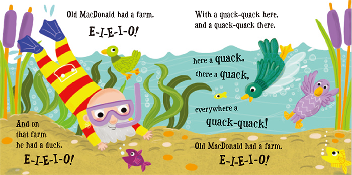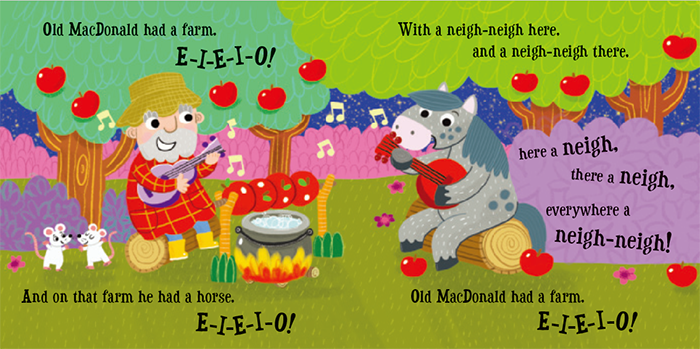 老麦克唐纳有一个农场 在这本充满乐趣的图画书中,有个大家都喜欢的农民和他热闹的农场 翻开书页,和老麦克唐纳一起唱,找出农场里所有的动物。 可以学习很多动物的发声,很多拟声词。