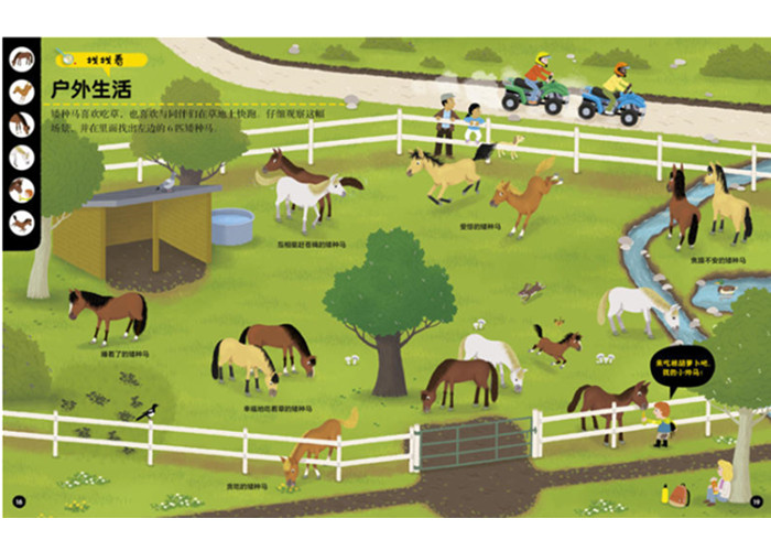 矮种马是普通的马的宝宝吗?上马后应该如何喊停,如何转弯呢?矮种马每天待在牧场里都做什么呢?怎样给自己的矮种马梳洗呢?矮种马真的站着睡觉吗?进行马术练习需要特殊的装备吗?矮种马宝宝的生活又是怎样的呢?