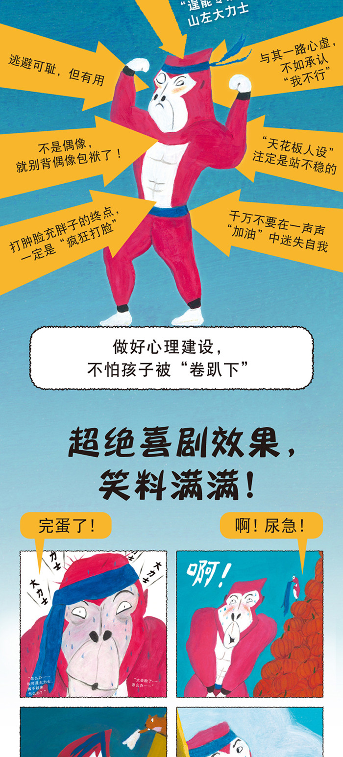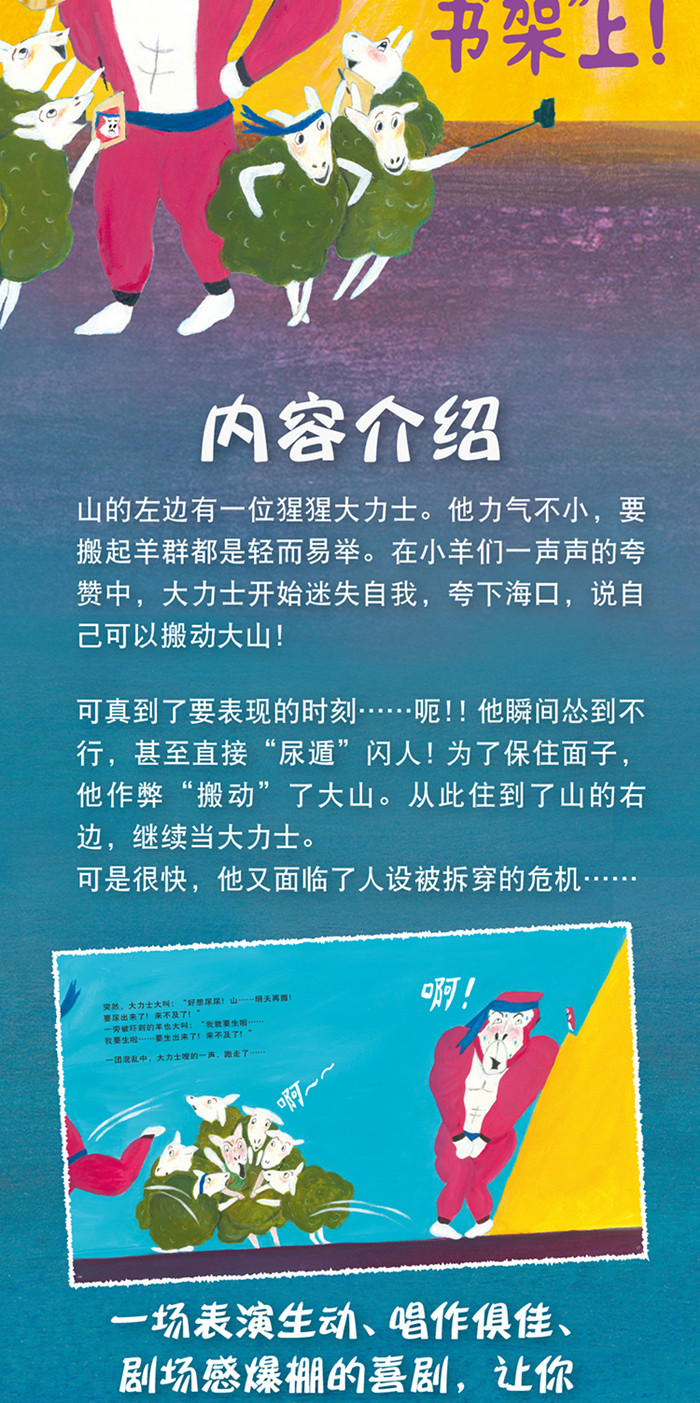 山的左边有一位猩猩大力士。他力气不小,要搬起羊群都是轻而易举。在小羊们一声声的夸赞中,大力士开始迷失自我,夸下海口,说自己可以搬动大山! 可真到了要表现的时刻……呃!!他瞬间怂到不行,甚至直接尿遁闪人! 为了保住面子,他作弊“搬动”了大山。从此住到了山的右边,继续当大力士。 可是很快,他又面临了人设被拆穿的危机……