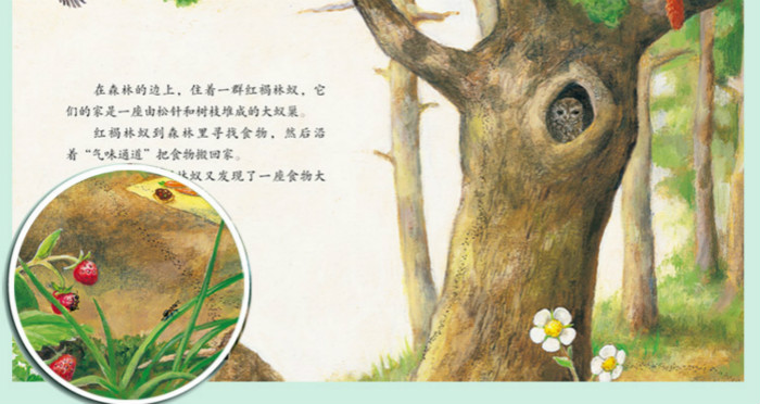 妮·默勒用 奇的画笔,带我们进入红褐林蚁的 国,去见识小小蚂蚁的 凡智慧:它们会圈养牲口(蚜虫),它们会储备鲜 ,它们甚 还会切割树叶