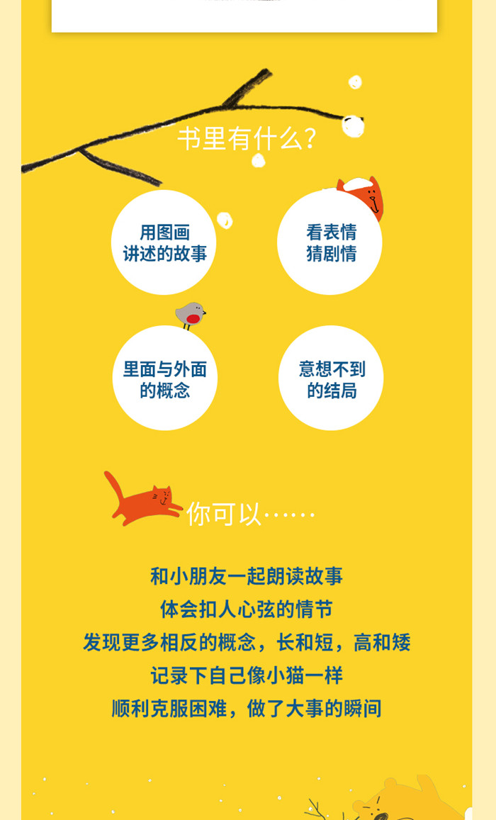 这是一本来自意大利的无字书,书中一间屋子,屋子里有两个正看向窗外的孩子,窗外顺序出现几种动物。如果你迫不及待地想知道窗外发生了什么,就跟随小朋友们的视线来看一看吧。但是一定要等到最后,出乎意料的结局,引人入胜的情节,会令读者大吃一惊。 画风有趣。故事短小精悍,有巧思。