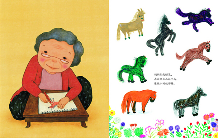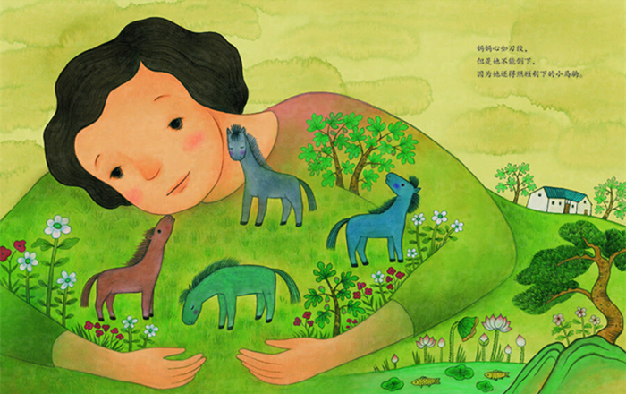 这本《妈妈的马》所面向的不只是幼儿读者,它所带给成年人的感触也是非常深刻的。书中的主人公在不同的时期将自己、丈夫和孩子们比作自由、优雅的马,度过了人生中一个个重要的时期,经历了人生中的喜与悲、生与死等,让我们看到一个女孩蜕变为一个女人、一个女人再蜕变为一位母亲的全过程。将生命的无常、母子的情意等呈现在读者面前,发人深省。