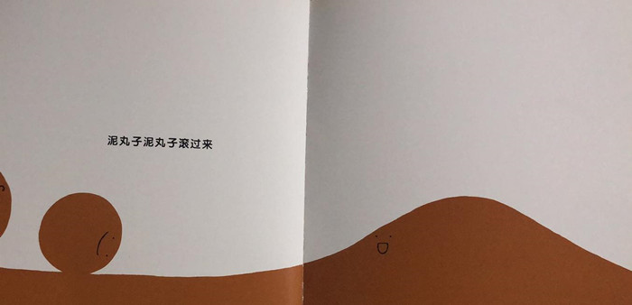 新井洋行文图,徐超译的《小泥巴咕咚咕咚(精)》中,小泥点纷纷落下来,用的是“沙啦沙啦啦啦”,仿佛泥土小精灵们在悦耳动听的乐曲伴奏下翩翩起舞;一个个泥丸子滚过来,“骨碌骨碌骨碌”,透着股诙谐的调皮劲儿;而在表现个头巨大的泥丸子从上向下砸下来的时候,用了掷地有声的“咕咚”,将泥块的敦实感和重力作用下落地瞬间的爆发感体现了出来。声音是孩子们感知与体验周围世界的重要通道,一串串如音符般美妙的声音,一个个节奏鲜明的旋律,往往很容易把他们带入故事的情境。 只要大人念出这些生动的象声词,孩子一定会发出会心的笑声,并沉浸其中。