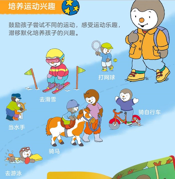 爷爷带乔比去游泳,乔比自己穿泳裤、整理衣物、淋湿自己,做好了游泳前的准备。有爷爷在,乔比游得很开心……