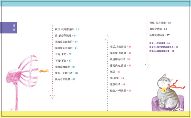 收录了13首新诗,其余7*择了具有哲思的诗。一如书名,其中大部分的猫是具有诗人气质的猫,是诗人通过想象所创造的猫。我的猫是爱思考的,比如“它还是关心海里有没有鱼,海里有那么多的垃圾,今天的鱼,还好吗?”我的猫是爱幻想的,比如它认为“豪雨之后,那不就是一片汪洋吗?每一根从天而降的雨丝,不就是一种垂钓?”这一册诗人借猫的思考,写出了自己对于世界、自由、幸福、审美、修行、生活的看法。