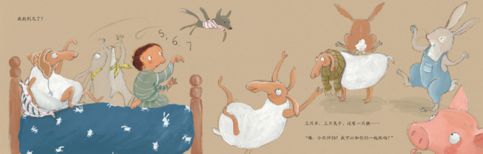 这本图画书以传统故事中“睡前数羊”的桥段为开端。小主人公开始了一场梦幻般的数数接力。但有趣的是,他数着,数着,所有的小动物都出来了,就连小狼也来了……充满想象力的画面和故事,可以帮助孩子缓解睡前焦虑。
