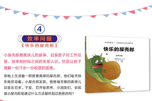 小屎壳郎推粪球儿的故事,启蒙孩子对工作总量、效率和时间之间的关系认识。同是让孩子理解一份汗水一分收获的道理。