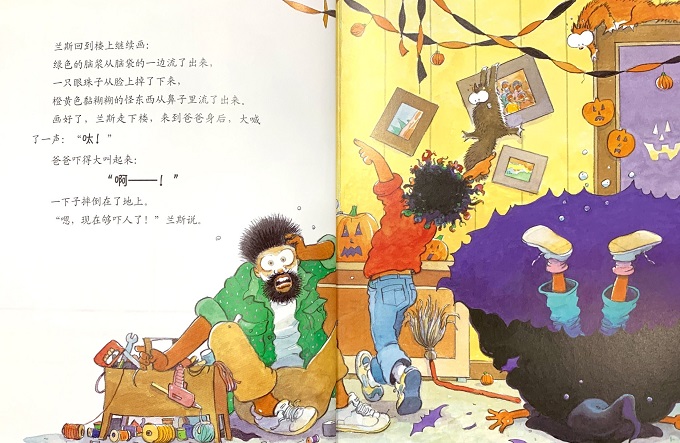 除了故事之外,插图也是蒙施图书的一大特色。蒙施图书中的插画有强烈的漫画感,看着书中的一幅幅漫画,就好象看到了动画片一个个静止的镜头。绘者迈克尔·马奇寇之所以选择这样的风格,都是为了配合蒙施笔下一个个诙谐风趣、现代感十足的新童话故事。画面中干净利落的线条,精致的细节刻画,也随处流露着幽默感、笑料不断,与文字配合相得益彰。封面、内文中有趣的细节伏笔,吸引孩子们的注意,仿佛寻宝一般,让孩子感受发现的乐趣。