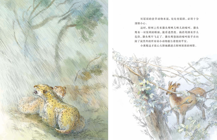《沈石溪画本(辑)·情豹布哈依》 The Love Leopard Buhai 《情豹布哈依》讲述的是一个关于豹子的故事。 公豹布哈依从老虎嘴里救出了母豹香格莉,香格莉很感激也很欣赏布哈依,就嫁给了他。它们幸福地生活在一起。 在一次拯救行动中,布哈依为了救香格莉和豹崽,被象群踩断骨头,成了残废。布哈依没法照顾家人,为了小豹崽们可以健康的成长,它甚至让香格莉把别的公豹请进他家,而自己却被公豹赶出了家门。香格莉不想失去布哈依,就把后来的公豹赶走了。为了一家人生存,香格莉不得不去农家抓动物吃,布哈依不想让妻子冒险,也不想看到妻子伤心,它用尽后力气为香格莉和豹崽杀死了公,让香格莉和豹崽有肉吃,以后可以捕捉没了保护的母和小,过上好生活。