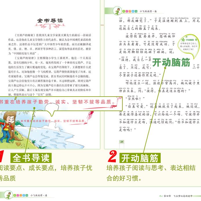 逐字注音,精心批注。书中的全书导读、阅读理解、知识小窗等版块的设置扫清了阅读障碍,让孩子们有兴趣读和读上去不难。好词积累、佳句仿写版块,让孩子们在快乐阅读的同时学习更多的知识。