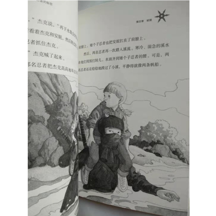 于是,他们乘着神奇树屋来到古代日本,遇到了神秘的黑衣忍者和功夫深不可测的忍者大师,还被追捕忍者的日本武士包围。