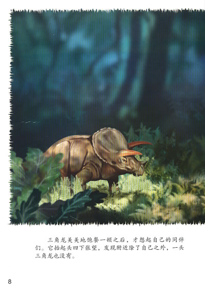 三角龙生活在距今6500万年~7000万年的白垩纪晚期。“三角龙”在希腊语中的意思是“长着三只角的脸”,因为所有的三角龙属恐龙头上都长有三只角。三角龙在它们的族群中是最繁盛的一个属,也是体重最重、体形最大的。三角龙的体重可达11吨,比一头雄性大象还要重,身长可达9米。它们巨大的颅骨可长达3米,长度几乎能占去身长的三分之一。三角龙四肢着地行走,它们的四肢强健、粗壮,末端长着蹄状的爪子。