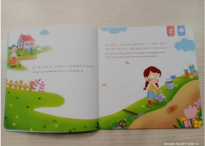 在一间小木屋李,生活着小女孩和她的爷爷奶奶。 春天到了,小女孩在菜园里种下了一粒罗伯种子。 “萝卜萝卜快长大,到时候我们要开一个萝卜派对”