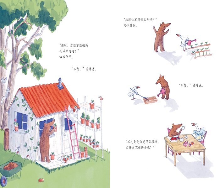 新锐绘本作家黛西·赫斯特全新力作 爱探险的熊和宅家的鹅——不同的个性,动人的友情 好朋友的相处之道——鼓励、支持、包容、接纳 面对新世界——满怀好奇、不断追问、勇敢探索 探索新世界的法宝——热情友善、真诚互助 故事层次丰富,适合全年龄段 风格清新,细节丰富,耐人寻味 获奖作者作品,讲述了关于友谊与梦想、出发与回家的动人故事。每个人都有独特的个性,如何在朋友、家人、亲子之间,既保持亲密,又给彼此空间,鼓励对方追求自己的梦想,这个故事给了我们很好的启发。