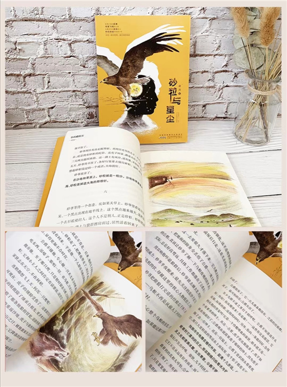★中国第五代儿童文学作家代表人物、两届全国优秀儿童文学奖获得者、儿童文学界一位执着于大地的书写者 薛涛 全新力作 ★坠落沙地的孤鹰,渴望飞翔的公鹅,执着坚韧的孤独老人,向往自由的观星少年,诉说一段问苍穹、拥万物的传奇 ★国际安徒生奖得主、著名儿童文学作家曹文轩,国际儿童读物联盟(IBBY)主席张明舟,全国名师、金牌阅读推广人耿玉苗联袂重磅推荐 ★以东北沙地中的一个村落乌粮为背景,抒写新时代的中国故事,极具现实意义。 ★两位少年暗合交融的成长经历与动物世界的悲壮传奇生动交会,引人入胜。 ★引领青少年读者思考坚守的价值、真理的力量、自由的意义等多重命题。 ★国内知名插画师手绘全彩插图,生动细腻,营造出辽阔的意境,独具审美意蕴。 ★精彩亮相德黑兰国际书展,中英双语版即将同步推出 我时常听见一声声独唱,我的、他人的、草木的、群星的……当我写这个故事时,我能听见一声声合唱,我们的、天与地的,人与万物的。 ——儿童文学作家 薛涛 薛涛以东北沙地中一个村落乌粮为背景,对东北沙地这个独特地貌进行了全景式描绘,陌生而新鲜的场景营造出独特的审美意蕴。作品通过讲述两位少年砂粒与星尘交融暗合的成长经历,架构出一段问苍穹、拥万物的传奇,直面人们对故乡逐渐消逝的惆怅、对乡土生活秩序的坚守、对美好家园的赤诚呼唤,庄严与诙谐兼具,温情与刚性并重。小说的叙事线索也并非单线切入,而是围绕两个少年进行双线叙事,明线与暗线交替,在时间和空间上形成呼应。这是对儿童文学叙事结构的有益探索。
