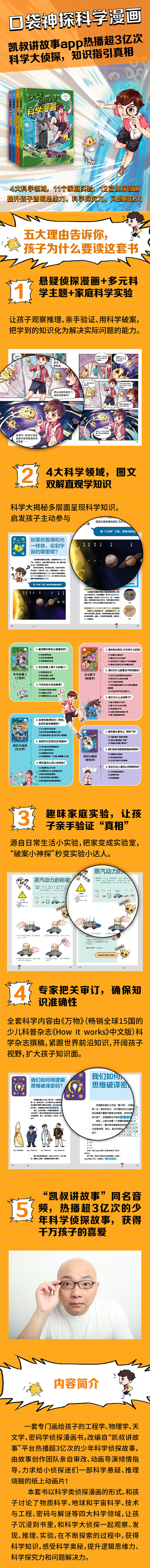 《口袋神探》系列,讲述了长江边梧桐镇上,一个喜欢破案的9岁男孩艾小坡,与因意外误入地球的外星人鸡飞飞,结成侦探联盟,通过思考、调查、研究和推理,破解身边一系列神秘案件的精彩故事。   故事以漫画形式展开,包含众多紧扣小学科学课大纲的知识点,涉及天文、物理、密码、工程等不同科学领域,引导孩子在故事中主动思考,跟随艾小坡和鸡飞飞一起观察、发现、推理、破案,让孩子们在充满悬念的故事中,潜移默化地了解丰富的科学知识、培养各种能力、提高科学素养。