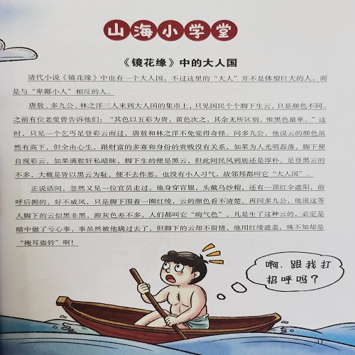 《这才是孩子爱看的山海经》根据《山海经》原文分为《山精(上)》《山精(下)》《海怪》《远民》四册。每册均选取了40多个神人异兽,以趣味故事、知识链接、插图登形式进行展示和讲述。我们知道《山海经》中隐藏着奇异的怪人、怪兽和神灵,还有神奇的花草和古老的传说。本书借助轻松幽默的漫画、通俗易懂的讲解、趣味盎然的知识链接以及精美绚丽的插图,将他们以独特的面貌展现在孩子面前,让孩子感受到古人天马行空的想象力与创造力,收获愉快的阅读体验和丰富的文化知识。