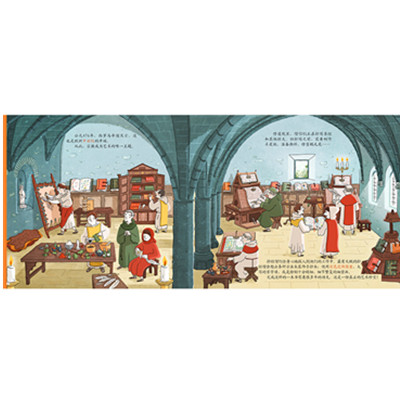 《亲亲历史图书馆·艺术——从克罗马农人到今天》,是从法国专业儿童科普出版社——米兰出版社(Editions Milan)原版引进的艺术主题通识启蒙图画书。这册书用贴近儿童视角的编写方式、场景式的插图和简洁有趣的语言,沿着历史的时间轴,娓娓讲述了人类艺术的漫长曲折的发展历史:从穴居时代原始人类的岩画到古埃及人的金字塔壁画、从古希腊古罗马的雕塑和装饰画到基督教的宗教艺术、从文艺复兴到印象派再到立体主义、从达芬奇到塞尚和康定斯基、从绘画雕塑到摄影、电影和广告、从西方的主流艺术一直到原生艺术。