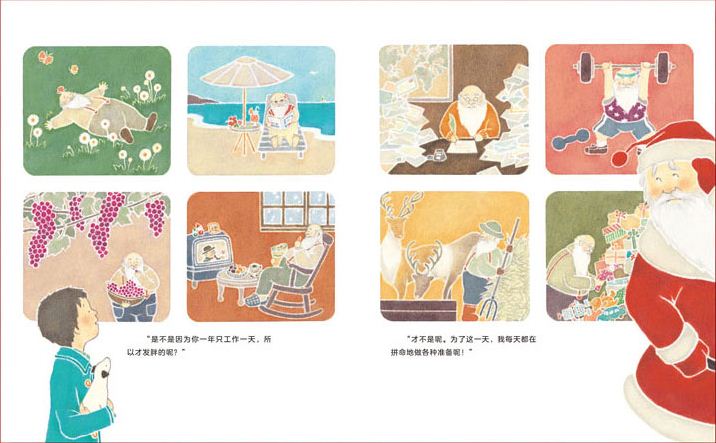 本书中描写的圣诞老人并不是人们固定意义上的形象,但是他的不同之处也有其可爱的一面。在这个圣诞节里,作者给小读者们带来了一个更平易近人、更生活化的圣诞老人。