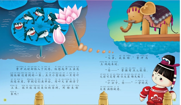 向传统致敬——绘本中国故事,选取中国千百年来流传的脍炙人口、耳熟能详经典传统故事,以绘本的形式呈现给小读者。《曹冲称象》讲述了曹操的儿子曹冲小小年纪善于思考,聪明过人,用等重的石头测量出大象的体重,帮助大人们解决了难题。