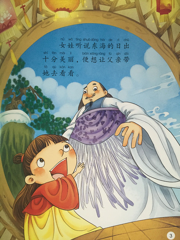 本丛书选取十个中国经典神话故事,由国内一线插画师联袂打造,展现给读者一幅幅古朴优雅的神话画卷,有浓浓的中华艺术美。这套绘本的特色:1.水墨画和版画。以《猴子捞月》为例,每一幅都美得不要不要的,猴子们的表情也都刻画得非常生动。*可以裱上画框,挂在自家墙上。浓郁的中国风使这本书区别于市面上其他绘本。2.无需会认字,图画本身已经在讲故事。即使孩子不识字,仅靠“读”画面,也可以读出一个大意。这套绘本正是如此。而等到孩子上小学后,用这个注音版本的绘本来识字认词也是极好的。3.故事情节活泼有趣,符合孩子们认知新事物的过程。看到月亮掉进井里了,猴子们首先是想办法去把月亮捞起来,你拉我的腿,我拽你的尾巴。后面却发现月亮一捞就碎。类似猴子们齐心协力去捞月亮这样有趣的情节,肯定能引起小家伙们的共鸣。