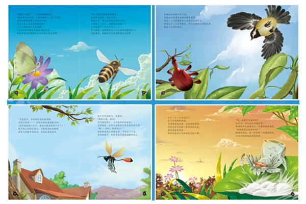 小林清之介文笔优美清新,保留了昆虫记中的知识点,而用亲切的语言讲述,更加适合孩子阅读。绘画十分逼真,活灵活现,色彩艳丽,如同多姿多彩的大自然,翻阅起来,有亲临大自然的美感。而为了让读者了解真实的昆虫,画家还用心地为读者绘制了与现实中一般大小的虫子。