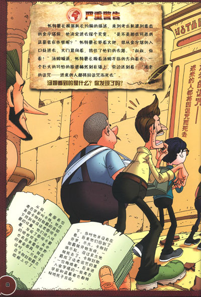 国家考古队在埃及探寻金字塔的奥秘时受到了不明物的袭击,很多队员因此受了重伤,有的甚至昏迷不醒,有传言说这些都是因为埃及法老的诅咒。正在休假的怀特警长从考古队长那里得到消息后,决定前往埃及查明真相。放暑假的小捣蛋鬼汤姆(怀特警长的侄子),也争着要一起去。他们会遇到哪些田难和危险呢?法老的诅咒又将如何化解?大家一起拭目以待吧!