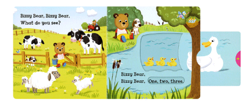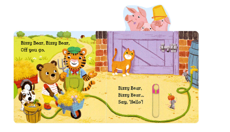 Introducing Bizzy Bear from Nosy Crow, an imprint of Candlewick Press! Introducing Bizzy Bear, the busiest bear on the block! With chunky sliders to push and pull, these robust little board books are perfect for active toddlers. Rich in visual detail and with touches of humor, they are set to become firm favorites in the family library. Bizzy Bear's off to lend a hand on the farm. Toddlers can help him count the ducks, feed the goats, and f ind the eggs before he waves bye-bye.