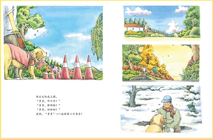 “我”是一只拉布拉多犬。小时候,我和一位老爷爷一起生活,他叫我“阳阳”,这是我的第一个名字。后来,我被送到一个帅气的大哥哥那里,他成为我的新主人,这时我有了第二个名字“多多”。大哥哥每天带我训练,我渐渐成为一只合格的导盲犬,迎来了新的主人望望姐姐。我和她相处地非常默契,她叫我“果果”,这就是我第三个名字。每天,我和望望姐姐一起在城市里工作、生活,但我发现人们并不总是友好的,有时候公交车不让我上去;有的人会逗我、摸我让我分心;有小朋友带我玩,结果让我和望望姐姐分开了,只能依靠警察的帮助,回到望望姐姐身边。后来我和姐姐寸步不离,望望姐姐说我就是她的眼睛。