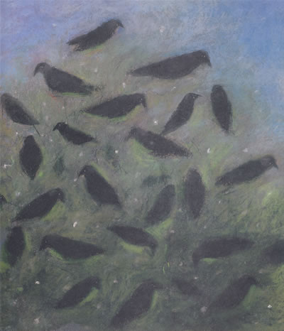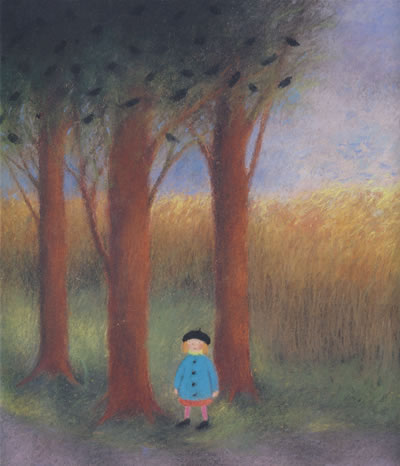 我像一棵树那样笔直地站立着,这样既不会影响到周围的树,也不会影响寒鸦的回归。我期盼着寒鸦们尽快飞回树上。这些寒鸦树一定也和我一样在等待着,因为它们也静悄悄地站在那里,一动不动。