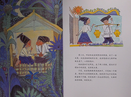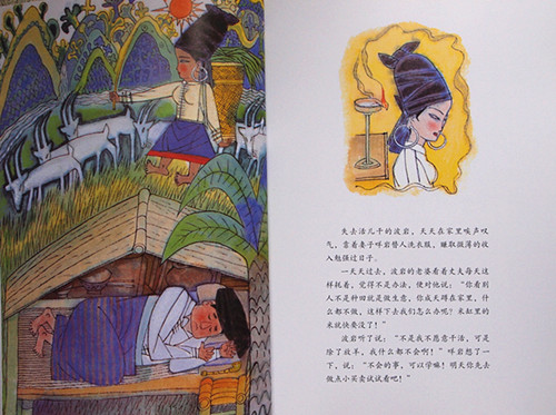 故事发生在云南阿昌族中,波岩是个傻子,有一天,他的老婆叫他背一筒豆子,拿到城里换银子,没想到,傻人有傻福,几经波折,最后,竟给他换回一堆黄金。