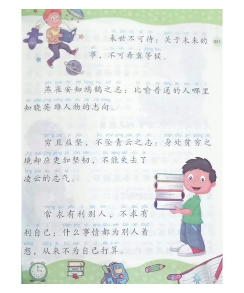 本书根据小朋友的心理发育和学习吸收特点,把丰富语文学习知识通过惯用语形式表现了出来。本书包括读书学习篇、尊师爱教篇、青春惜时篇、理想追求篇、爱国守法篇、美德修养篇、自尊自强篇、勤劳节俭篇、交际处世篇、智慧才能篇、文明行为篇、情感生活篇、健康娱乐篇等内容。本书配有释义、拼音和插图,图文并茂、生动形象,适宜广大小朋友阅读。