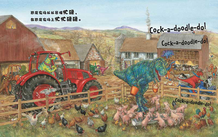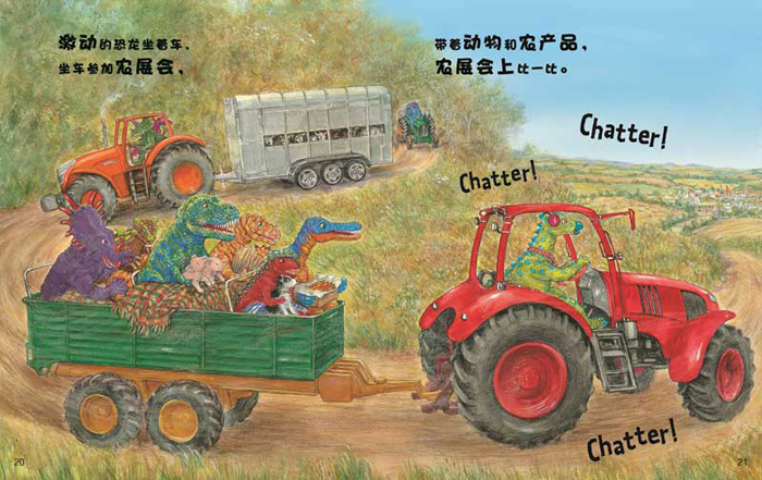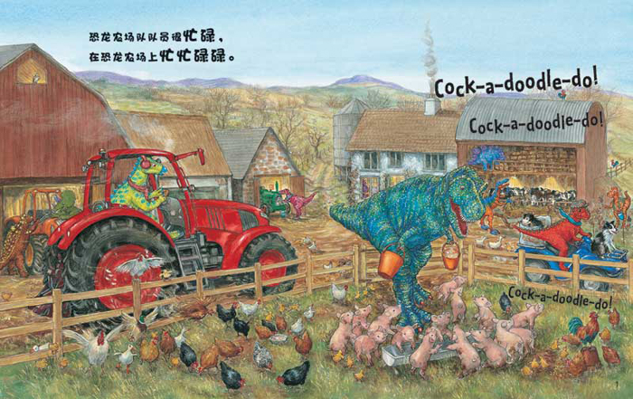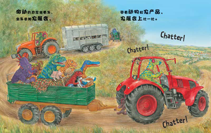 阅读精彩的恐龙冒险故事, 认识好玩儿的单词、恐龙、农场以及农业机械, 获得快乐的阅读体验