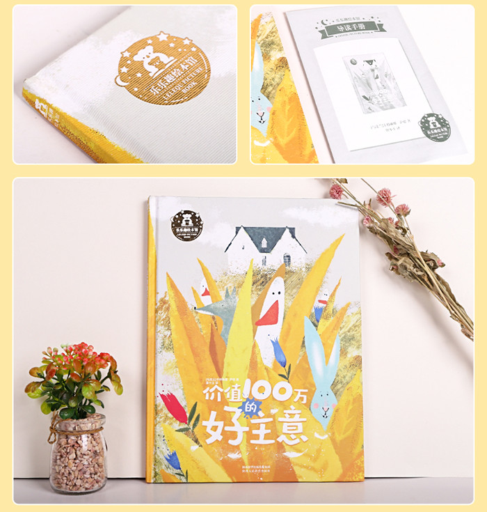一座遥远的农场,生活着一群鸭子和他们的主人。有一天,主人突然离开了农场,无人照料的鸭子开始思考他们的未来。原本他们打算写一份寻找新主人的广告,可是不会写字的鸭子们把用来写广告的毯子踩得乱七八糟的。没想到这样的毯子成了别的动物眼中的艺术品,为鸭子们换来了足以过冬的食物。这可真是一个价值100万的好主意!主人的离开让鸭子们失去了食物充足的安稳生活,在困境中,他们积极思考自救的方法,乐观的心态和极强行动力使他们终战胜了困难。这是一个充满惊喜与意外的鸭子“创业”故事,故事情节简单、有趣却出乎意料。